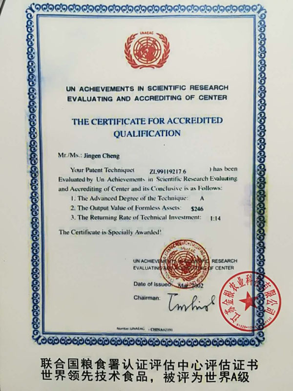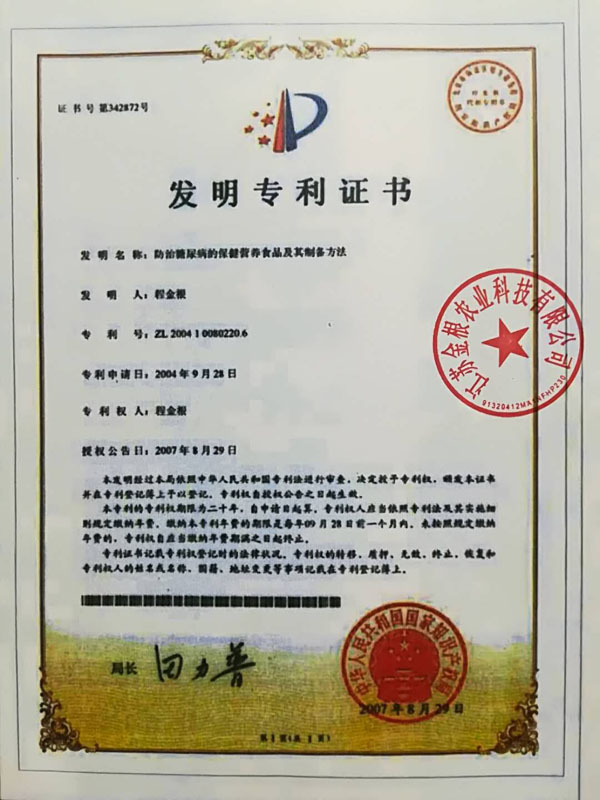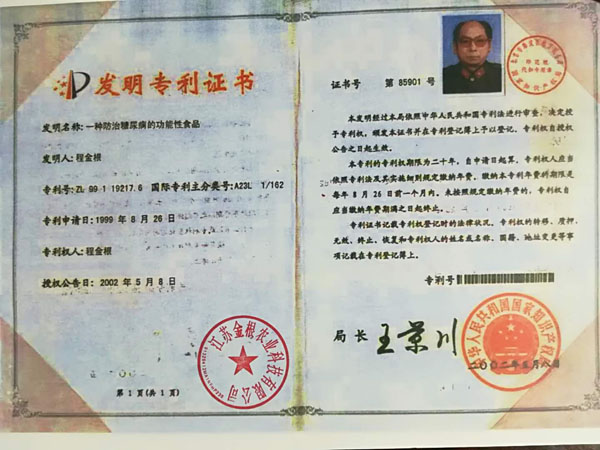 江蘇金根農(nóng)業(yè)科技有限公司是專業(yè)從事無糖食品、糖尿病、肥胖、和中老年人健康食品的研究、開發(fā)、銷售為一體的現(xiàn)代企業(yè)。 經(jīng)高級工程師程金根先生盡二十八年研發(fā),以五谷四豆為原料研制出一種特殊的營養(yǎng)食品。本產(chǎn)品富含人體所需的有機(jī)微量元素:鉻、硒、鋅、鎂、鋰等,幾十種氨基酸、膳食纖維及其它營養(yǎng)物質(zhì)。產(chǎn)品原料是按生態(tài)農(nóng)業(yè)有機(jī)的標(biāo)準(zhǔn)通過生物工程的種、培植方法,為谷糧增加了多種營養(yǎng)成份,按科學(xué)配方生產(chǎn)出“老山仁”系列產(chǎn)品。 本產(chǎn)品原料是在高寒、高濕、旱地等種植,要求施農(nóng)家肥,采用生物治蟲,因此是無公害的優(yōu)良品種。目前公司有四個種植基地,分別在江西、江蘇、陜西等地。 一種防治糖尿病功能性食品專利號:ZL99119217.6。 “程金根”系列產(chǎn)品先后獲得二項發(fā)明專利,并經(jīng)聯(lián)合國科技成果評估論證為A級產(chǎn)品,屬世界領(lǐng)先技術(shù)。在韓國、美國、香港、德國分別榮獲新技術(shù)、新產(chǎn)品博覽會金獎。 2006年經(jīng)國家農(nóng)業(yè)部、發(fā)展改革委員會、聯(lián)合國糧農(nóng)組織代表、中醫(yī)研究院、中國科學(xué)技術(shù)協(xié)會、中醫(yī)藥大學(xué)、農(nóng)業(yè)大學(xué)、農(nóng)學(xué)院、中國保健協(xié)會、糧油協(xié)會、食品研究所等十幾位專家對該專利產(chǎn)品做了評估論證,一致認(rèn)為該項技術(shù)先進(jìn)產(chǎn)品突出、食用安全,并給予很高的評價。 論證意見: 1、這項專利技術(shù)填補(bǔ)了國內(nèi)糖尿病特種功效食品的專用品種和栽培技術(shù)空白。 2、采用有機(jī)食品技術(shù),并以有機(jī)農(nóng)產(chǎn)品為原料加工特種營養(yǎng)食品,提高了產(chǎn)品的安全性。 3、用鉻、硒、鋅、鎂、鋰生物強(qiáng)化栽培技術(shù)已獲得發(fā)明專利,為國際先進(jìn)水平。 4、經(jīng)過10多年的應(yīng)用實踐,進(jìn)一步證明了通過飲食調(diào)理,可預(yù)防糖尿病,對已患糖尿病者有緩解和預(yù)防糖尿病綜合癥的功效。 “程金根”系列產(chǎn)品具有低脂肪、低熱量、高蛋白、富含各種微量元素(鉻、硒、鋅、鎂、鋰)、高膳食纖維、具有抗氧化、增加免疫力等特點,經(jīng)常食用有利于膳食營養(yǎng)平衡,是糖尿病、肥胖和中老年人、亞健康群體最佳的健康食品。