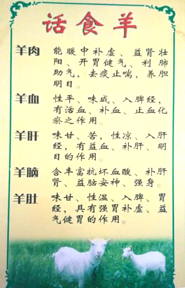 羊肉性溫?zé)帷⒀a(bǔ)氣滋陽(yáng)、暖中補(bǔ)氣、開胃健脾、還可以去濕氣避寒冷,暖胃寒、養(yǎng)吃百草、養(yǎng)根據(jù)自身生理需要選擇草木、固羊有“百藥之庫(kù)”之稱。古人云:多吃羊肉、健康長(zhǎng)壽。