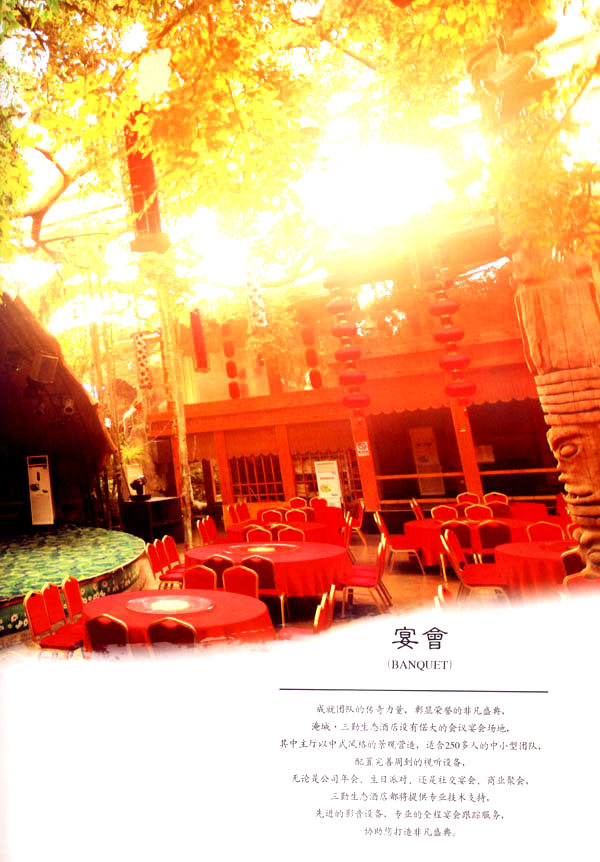 淹城花都溫泉水城孕育天地之精華,悅身、悅?cè)、悅心、悅神。置身其中泉水潺潺,霧氣繚繞、花瓣飄香,恍若仙境!稗渌略谑郑ㄏ銤M衣”,花都溫泉的浪漫與溫潤在這里完美展現(xiàn)。 花都溫泉水城包括洗浴區(qū)、戲水世界、露天溫泉、自助餐廳、生態(tài)房、別墅區(qū)、紅文化房、VIP區(qū)等多種功能區(qū)域,是集溫泉養(yǎng)生、休閑住宿、演藝會務(wù)為—體的休閑度假勝地,給賓客帶來江南小鎮(zhèn)的浪漫水城之旅。 古木新枝畔賓客對酒當歌,溪泉石椅旁把茶品啜。 淹城-三勤生態(tài)酒店,這里是一處綠色生態(tài)的美食家園。此地鬼斧神工.奇水異石,和風(fēng)細雨林中穿過,引百鳥朝來暮歌;這里集生態(tài)餐飲、演藝、中小型會務(wù)為一體,將現(xiàn)代裝飾風(fēng)格和古雅拙樸的自然裝修完美整合;這里聚集大江南北名廚,推出精致綠色美昧佳肴。來到這里,賓客可享田園至美之景,品舌尖至鮮之味,實乃人生一大樂事。